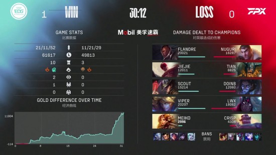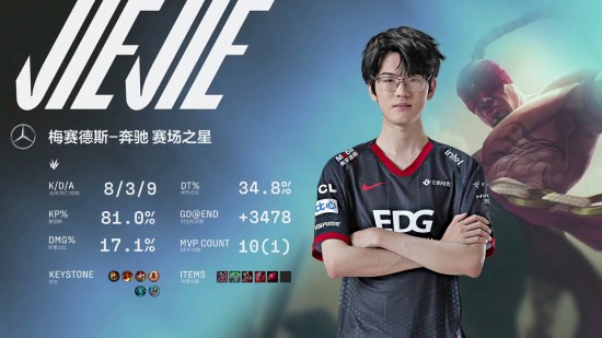 首局赛后数据:MVP:前期带动队伍节奏的EDG.JIEJIE(盲僧)