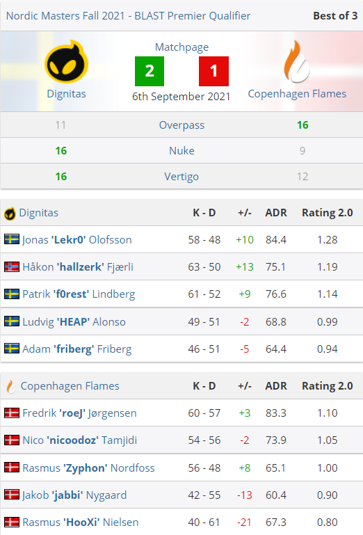 最终决定showdown名额的BO3中,Dignitas先是在Overpass被翻盘,半场领先三分的他们下半场仅仅拿到两分。不过很快他们就在Nuke上重拾自信,16-9击败对手后,BO3打成BO1,成败都取决于Vertigo的胜利与否。两队半场依旧僵持不下,最终还是老fo站了出来,下半场带领队伍一路取得领先,f0rest也打出1.50的rating,29-17的K/D帮助队伍16-12结束了比赛。