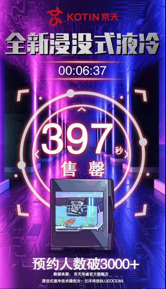 由兰洋科技提供液冷散热模组,京天华盛7月10日上线的全新浸没式液冷主机,限量发售50台,在正式发布397秒后售罄,受到了广大电脑玩家们的关注。目前兰洋科技正在进行新一代的浸没式液冷PC散热模组的研发,将为电脑带来更极致的散热效果、更稳定的运行环境。