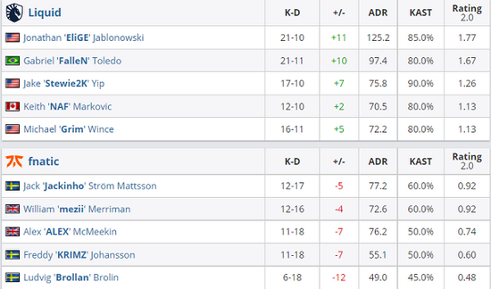 Liquid 2-0 fnatic(Nuke 16-4;Dust2 25-21)