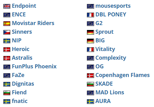 目前完整参加IEM秋季赛欧洲区的队伍名单如下: