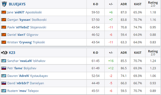 BLUEJAYS 1-2 K23(Inferno 16-7;Dust2 13-16;Mirage 7-16)