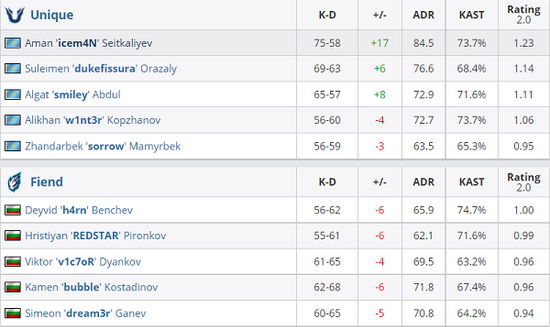 Unique 2-1 Fiend(Dust 17-19;Overpass 16-13;Nuke 16-14)