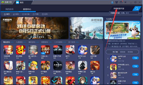 方法2:进入“应用中心”首页,通过推荐游戏,也可找到《英雄联盟手游》。