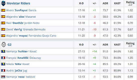 Movistar Riders 2-1 G2(Mirage 10-16;Vertigo 16-8;Ancient 16-14)