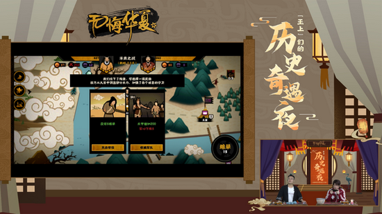 过程中,作为欢迎嘟督的见面礼,《无悔华夏》项目组为他准备了一个历史奇遇小游戏,向来宠粉的嘟督选择与粉丝一同决定奇遇走向,解锁了多个爆笑结局。