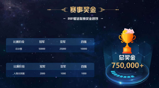 任何赛事奖励都是重中之重,只有足够多的奖励,才能吸引众多玩家发挥全力进行争夺!星途联赛总奖金高达750000元,其中入围全国赛,冠军可以获得2000元、亚军与四强可以获得1000元。总决赛阶段,奖励直接暴涨,冠军队伍直接斩获50000元奖励,亚军也有25000元奖励,四强队伍也可以获得10000元奖励!三个电子竞技项目,也就意味着有三个五万元的奖励,这是非常诱人!