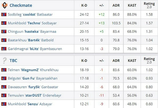 Checkmate 2-0 TBC(Dust2 16-9;Overpass 16-6)