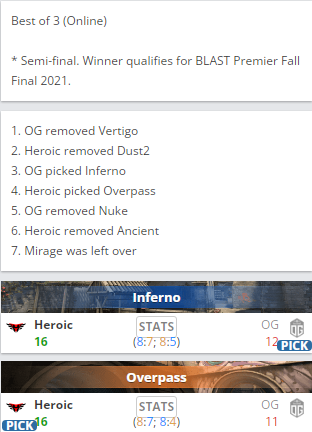 Heroic 2-0 OG(Inferno 16-12;Overpass 16-11)