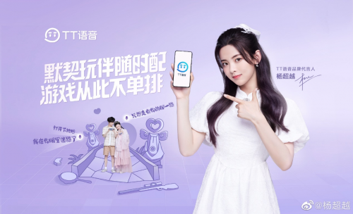今年7月,TT语音正式官宣中国新生代青年演员、歌手杨超越为其首位品牌代言人,与玩家一同开启活力有趣的开黑上分之旅。杨超越作为“伴随式成长”偶像,其在生活和工作中展现出来的乐观坚韧、超越自我的品质和真诚率性的电竞美少女的形象与TT语音的品牌态度及目标用户高度契合。借助杨超越的影响力,有助于TT语音将目标受众从游戏玩家扩展至泛娱乐群体,快速在年轻人中开拓出增量市场,进一步获取发展空间。