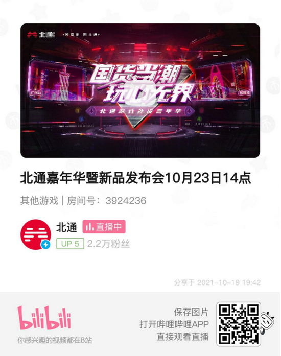 目前北通游戏外设嘉年华的报名活动仍然火热进行中,而因为各种客观原因不能亲临现场的玩家们也可以在10月23日14:00通过北通B站官方直播间观看全程直播。