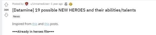 Reddit的原贴,19位英雄中已经有两位出现在游戏中了