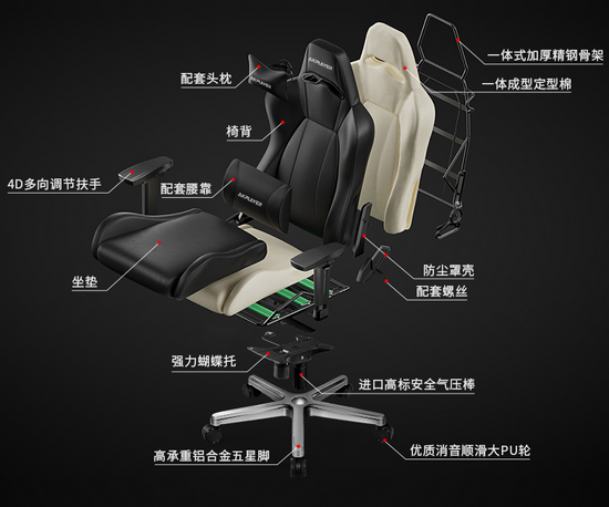 首先从电竞椅的结构上来分析,承重环节中的气压杆至关重要,厂家在制造椅子时会在气压缸筒里充入一定量的气体,优质电竞椅使用的气体一般是纯度高于90%的氮气,这样可以保证其稳定性,阿卡丁电竞椅就是在此基础上,又采用了韩国进口SAMHONGSA/GAS SPRING气杆,仅钢壁就有3.5mm厚,安全可靠。第二,电竞椅内部骨架的坚固程度也值得考量,不仅是安全性,椅子承重的能力也取决于此,加厚的钢制骨架和德国赛车点焊技术,使得阿卡丁电竞椅在安全性能方面脱颖而出,第三,优质的电竞椅采用的填充物是环保材料,无论是对于使用者和环境来说,都是有益无害的。
