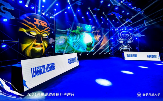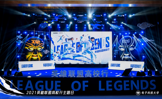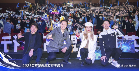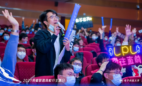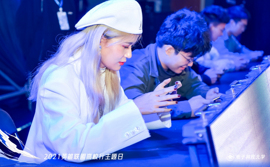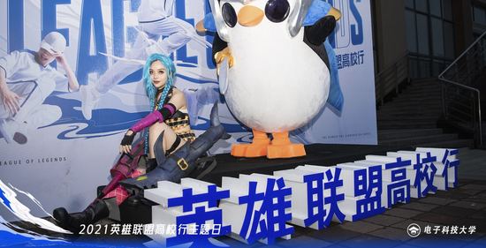 不仅如此,英雄联盟高校行还特别邀请电竞明星苏小妍,在电子科技大学现场上演友谊赛。更有打扮成《英雄联盟》人气角色“金克丝”和金铲铲企鹅形象的Coser,以及微博主题互动墙等活动在线上展开,共同助威正在出征2021英雄联盟全球总决赛的LPL战队。
