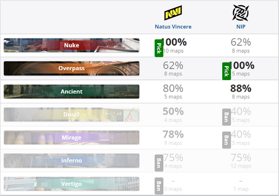 Natus Vincere 2-0 NIP(Nuke 16-9;Overpass 16-9)