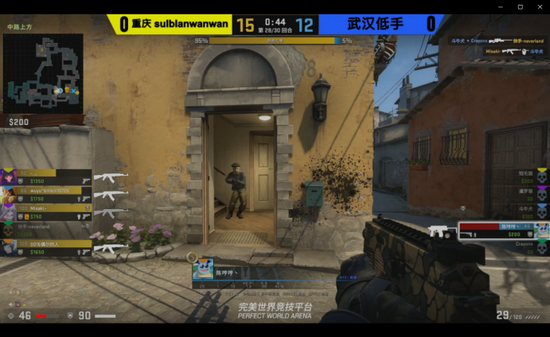 在赛道2双方BO3的第一场对决中,地图上选择了小镇。武汉低手作为T方拿下了手枪局和第二局的胜利,但长枪局便被CT连拿三分,随后双方进入了谁E谁是狗环节,互相拿分。在上半场最终局CT方进行了一波4A赌点,以9:6领先。