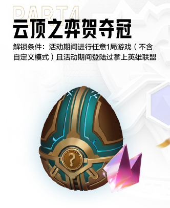 解锁条件:活动期间进行任意1局游戏(不含自定义模式)且活动期间登录过掌上英雄联盟