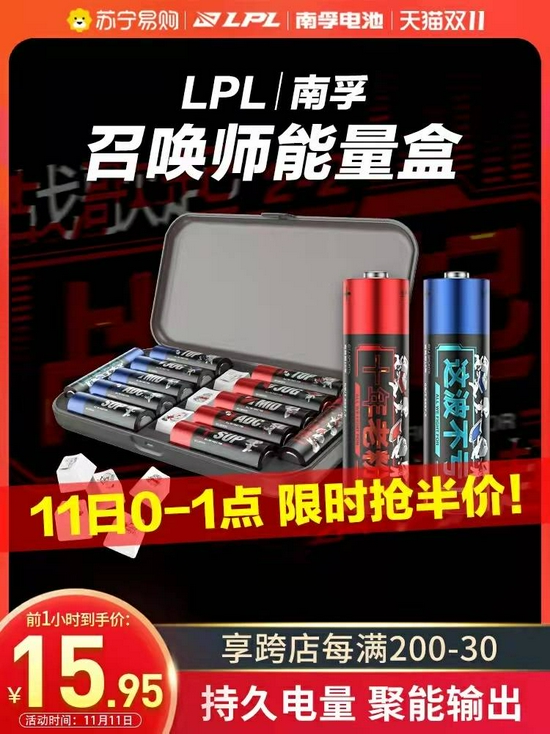 11月11日0点到1点,各大平台送出5000个半价购福利!到手价仅需15.95元!包括:12粒定制五号电池、三颗纪念键帽与联名收纳盒。而最普通的南孚五号电池单独购买12粒也需要25元,相当于少花几块钱还能为你的电池添加了一款有纪念价值的高颜值“皮肤”,还顺带“白嫖”了纪念键帽与联名收纳盒。15.9元就可以买到联名正品,不仅外观精美,更何况家里许多地方还都能用,这波是真福利。