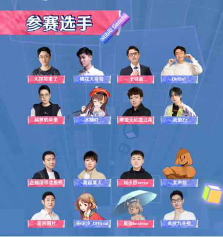参与本次哔哩哔哩原神UP主邀请赛的选手,有大祥哥来了、棉花大哥哥、卡特亚、OldBa1等16名B站人气UP主,他们兼具技术与人气;而虚拟主播冰糖IO的加入,也为赛事加入了新的亮点。16位UP主每周末都将进行创意赛事PK,共同争夺线下决赛资格与最终100万赛事总奖金。