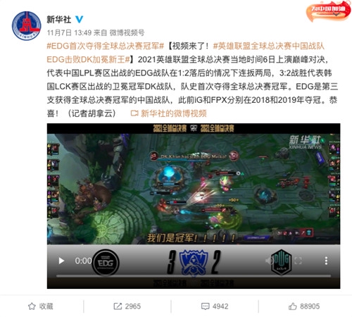 11月7日,微博热搜被英雄联盟2021全球总决赛所支配,那一晚上有80个相关话题冲上了榜单。而在这背后,是电竞一步步从小众走向主流的过程,例如此次赛事也受到了如新华社这样的主流媒体报道。