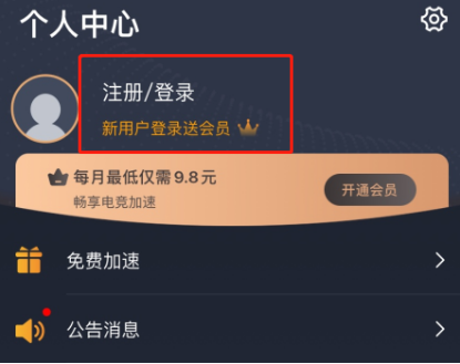 下载完奇游,记得注册账号,注册成功后可以免费领取奇游会员加速时长。