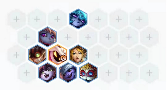 羁绊:1约德尔大王 6约德尔人 2极客 2黑魔法师 2白魔法师 2学者