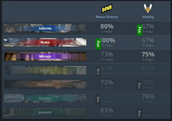 NAVI 2-0 Vitality(Inferno 16-7;NUKE 16-6)