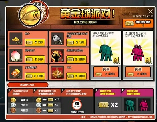 持有黄金球,出现20秒违例时,对方获得黄金兑换券。