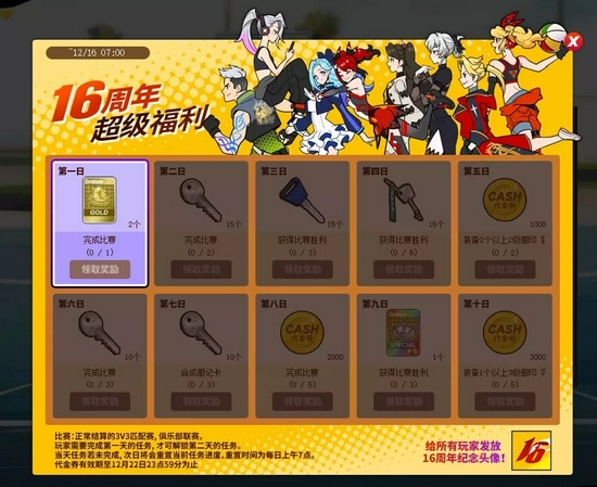 *活动期间首次登录打开活动面板会获得16周年纪念头像!