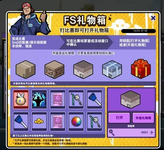 升级礼物箱可获得更好的礼物,但是也可能升级失败。升级失败时,保留原本的礼物箱等级。