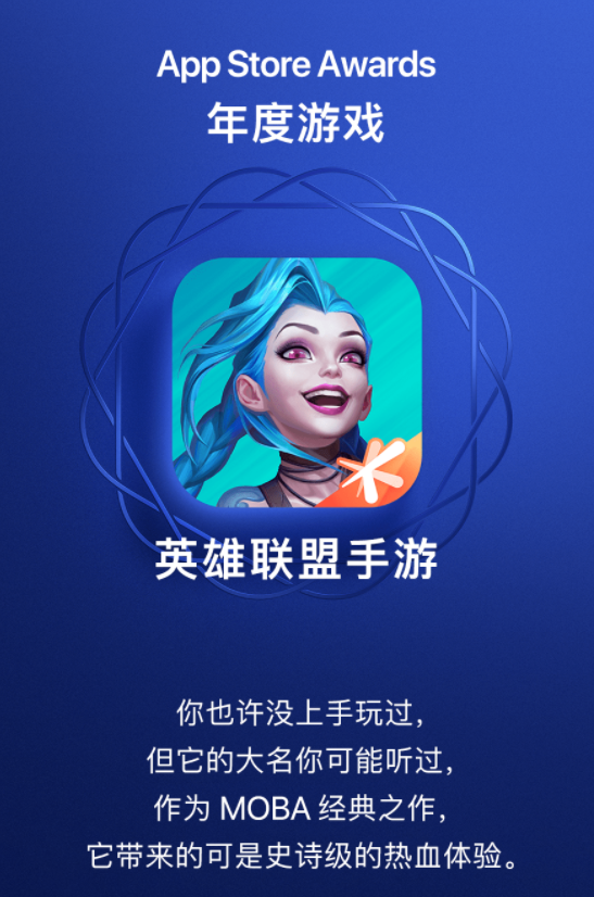 12月2日,苹果公布了App Store 年度精选名单,《英雄联盟手游》荣获年度游戏大奖,成为本次评选中的游戏类最大赢家。