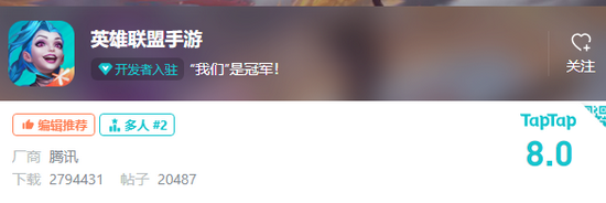 在玩家主导的平台评分中,《英雄联盟手游》同样表现出色。目前,TapTap上总计有超过10万人给出评分,平均得分8.0;好游快爆上,超过5.5万人进行评分,平均得分8.7,均为同类游戏最高评分。在参与评论的玩家基数如此庞大的情况下,《英雄联盟手游》这个高分佳作的含金量不言而喻。