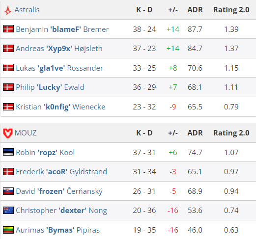 Astralis 2-0 MOUZ (Ancient 16-6; Nuke 16-10)