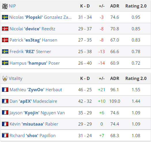 Vitality 2 -0 NIP(Inferno 16-6;Mirage 16-9)
