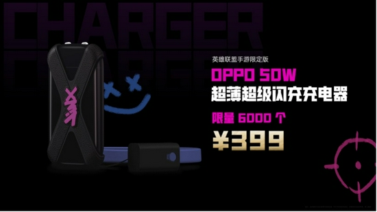 为了让玩家随时随地满电回血, OPPO此次还带来50W超薄超级闪充充电器英雄联盟手游限定版。定制的炫黑机身,搭配金克丝主题涂鸦感的印花,低调又时尚。此外,OPPO还为玩家增加了一个X型结构的保护壳,表面的皮纹设计灵感来自金克丝的皮质子弹背心,在保证散热的前提下,大幅提升了专属质感。