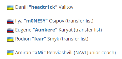 新的NaVi Junior将从他们NaVi Youth中挑选成员加入,目前他们拥有以下选手: