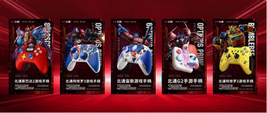此次北通变形金刚联名限定版游戏手柄共有五款,包含擎天柱、大黄蜂、红蜘蛛三个经典角色,涵盖手游、PC端、NS等多个游戏平台,满足手游、射击、竞技、硬核等多类玩家的使用需求。