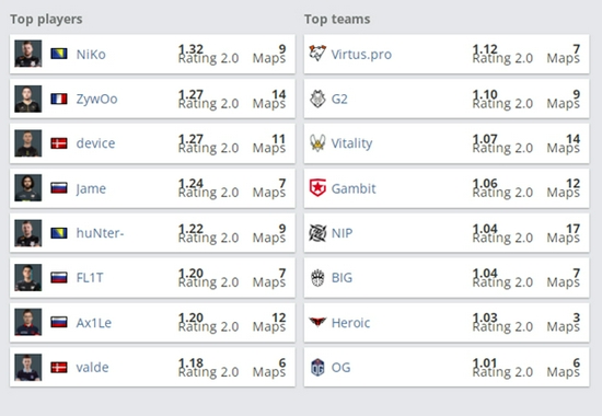 选手和战队Rating排名: