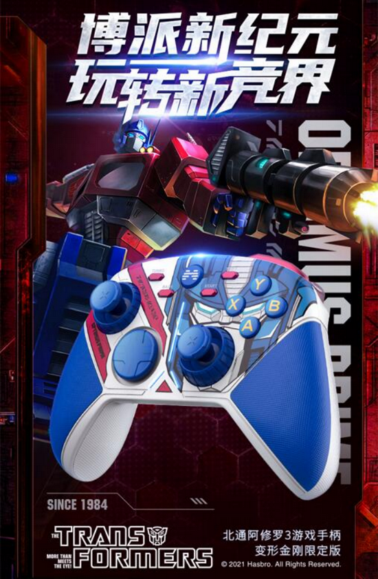 据悉,北通变形金刚限定版是孩之宝首个正版授权的国内游戏手柄。变形金刚限定版游戏手柄从合作伊始到正式上市,历时一年。历经七道先进的制作工艺而成,匠心独运。并且,目前这一系列限定版手柄采取限时销售,数量有限,具有极高的收藏价值。