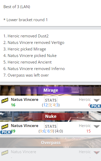 NAVI 2-0 Heroic (Mirage16-6; Nuke19-15)