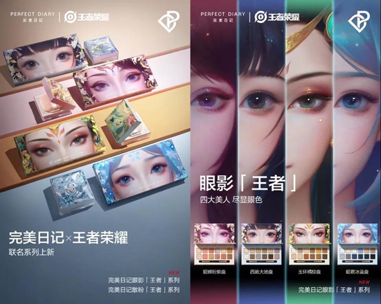 年轻人的日常话题里,“美妆”与“游戏”都是常见关键词,于是大家看到王者荣耀与完美日记携手,以“峡谷四美”貂蝉、杨玉环、西施、王昭君的妆容色彩为灵感,推出四位英雄主题的魅力“妆”备。用户使用后大量的分享、安利,在美妆界掀起一股“游戏配色风”。这不仅是产品层面的创新,也是在创造属于当下年轻人的美妆潮流文化。