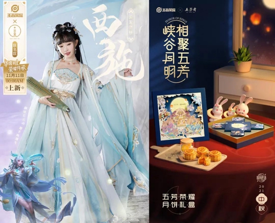 例如王者荣耀携手汉服品牌十三余带来“游龙清影”“金色仲夏夜”“乞巧织情”三款皮肤的主题华服,让传统汉服文化与游戏美学碰撞出火花;与敦煌研究院携手推出遇见胡旋貂蝉手账礼盒,将敦煌壁画里的文化瑰宝带给更多年轻用户;携手五芳斋,推出五芳荣耀月饼礼盒,将传统节日文化赋予现代审美的表达和注入年轻的新力量。