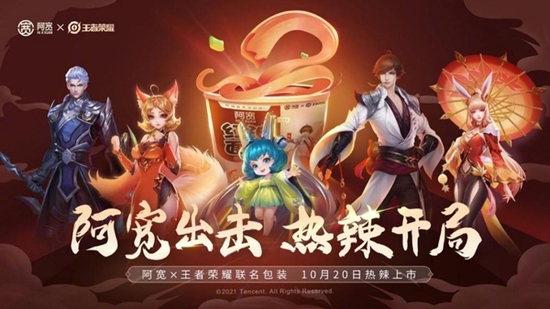 也许有人还记得,今年10月王者荣耀与白家阿宽的联名合作在社交媒体上掀起了一股高潮,其持续曝光量达8.2亿。流量自然转变为了变现能力,随后王者荣耀与白家阿宽的联名红油面皮在双十一期间荣登天猫方便面2小时销售排行榜第一名。
