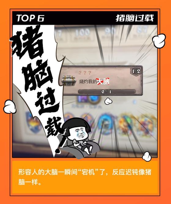 “猪脑过载”的意思是大脑一瞬间“宕机”了,人的反应变得像猪一样迟钝。不厚道的说,玩炉石解谜的朋友对这种感觉一定不会陌生。