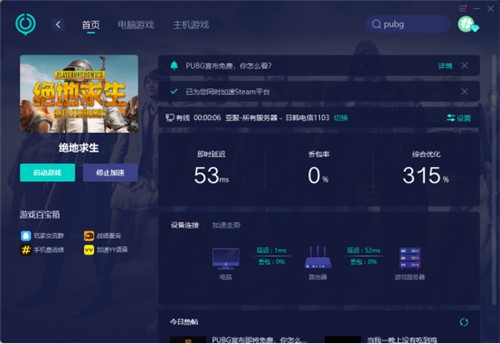 第三步:打开网易UU加速器搜索找到“PUBG”点击立即加速,即可享受极速体验。