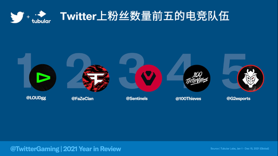 值得一提的是,身处巴西的电子竞技爱好者们在Twitter上格外活跃。在“发布游戏相关推文最多的国家和地区”中,巴西排名第五,仅次于日本、美国、韩国和泰国。但是,《英雄联盟》的巴西冠军联赛(CBLOL)是2021年Twitter上得到最多讨论的电竞联赛。而来自巴西的战队“LOUDgg”,也凭借诙谐幽默、多样丰富的推文互动成功登顶,晋身为2021年Twitter粉丝数量第一和讨论热度第一的电竞队伍。