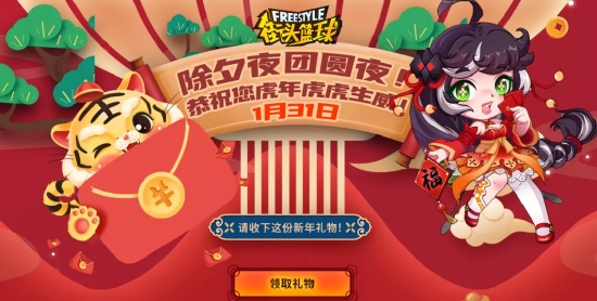 1月31日是除夕,属于你的假期终于开始了~《街头篮球》祝各位FSer除夕夜团圆夜快乐~祝FSer虎年虎虎生威!一定要记得领取礼物呦~