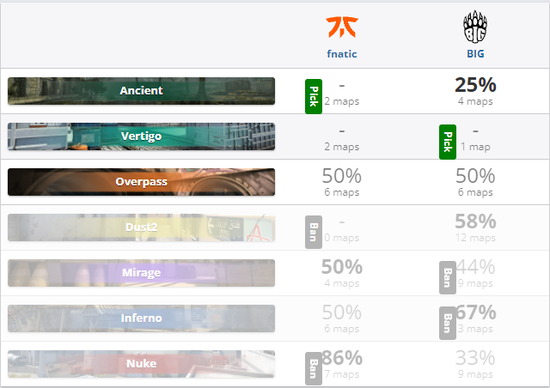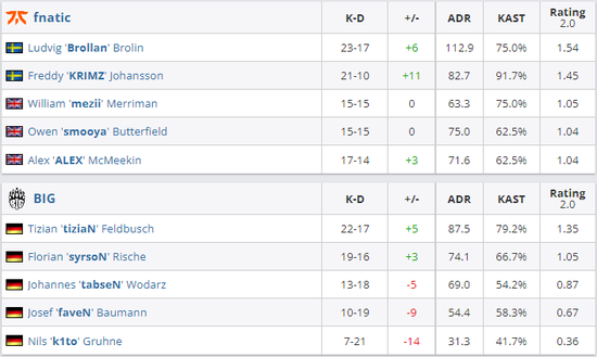fnatic 2-1 BIG(Ancient 19-17;Vertigo 13-16;Overpass 16-8)
