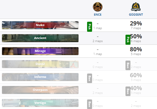ENCE 2-1 GODSENT(Nuke 16-5;Ancient 19-22;Mirage 16-11)
