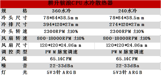 在风扇选择制作上,骇浪CPU水冷散热器选择了优质的高性能静音风扇。单个风扇为120mm,可通过PWM脉宽调速功能调整风扇转速,更加合理的利用风扇。而风扇的最大转速可达1800RPM、最大风量可达65.14CFM、最大风压可达2.31mmaq,而噪音表现仅为33dBa。在高效散热的同时还能够降低噪音干扰,让玩家更加专注于游戏世界。